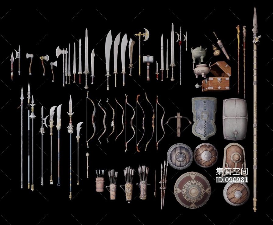 中式军事武器刀,枪,剑组合 3d模型下载 [模型ID:90981]