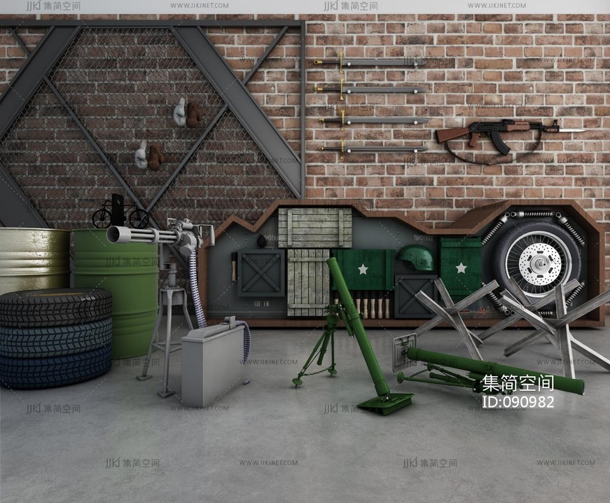 现代战地设备军事武器组合 3d模型下载 [模型ID:90982]