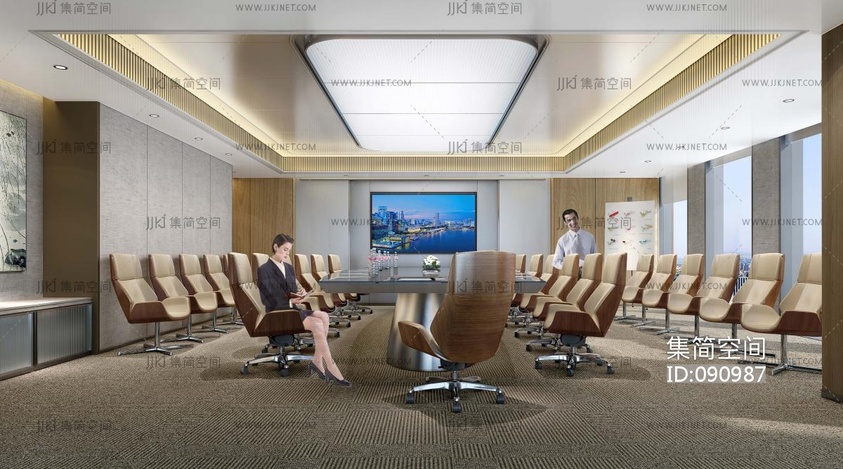 现代会议室,大会议室,会议桌椅 3d模型下载 [模型ID:90987]