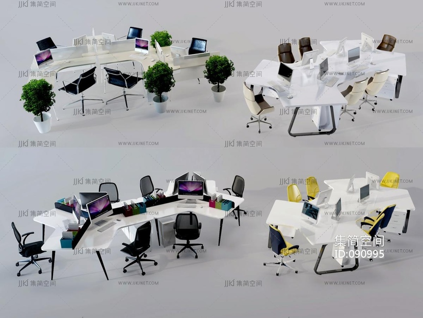 现代办公桌椅卡位 3d模型下载 [模型ID:90995]