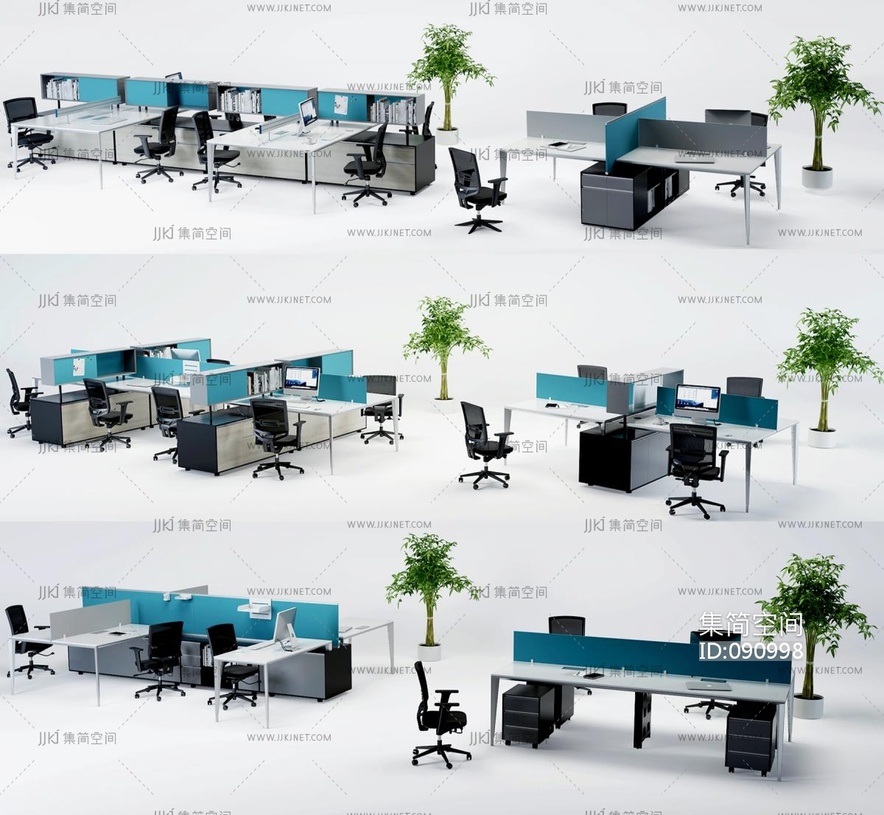 现代办公桌椅卡位 3d模型下载 [模型ID:90998]