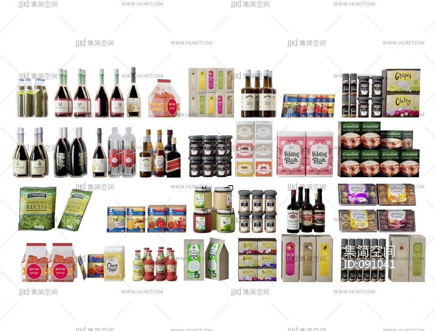 现代超市酒水食品组合 3d模型下载 [模型ID:91041]