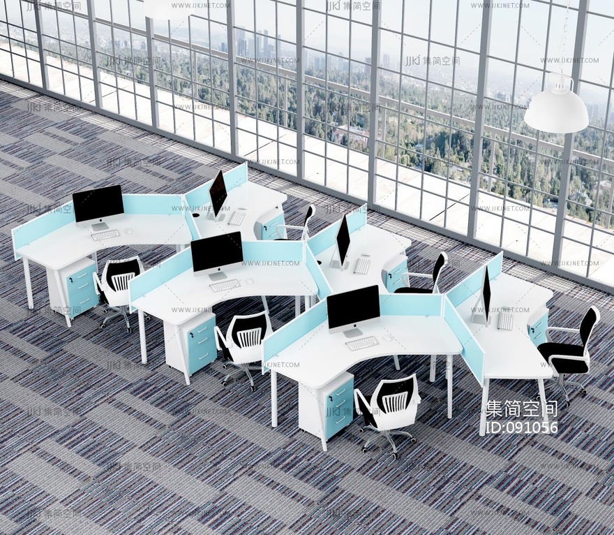 现代办公桌椅卡位员工工位 3d模型下载 [模型ID:91056]
