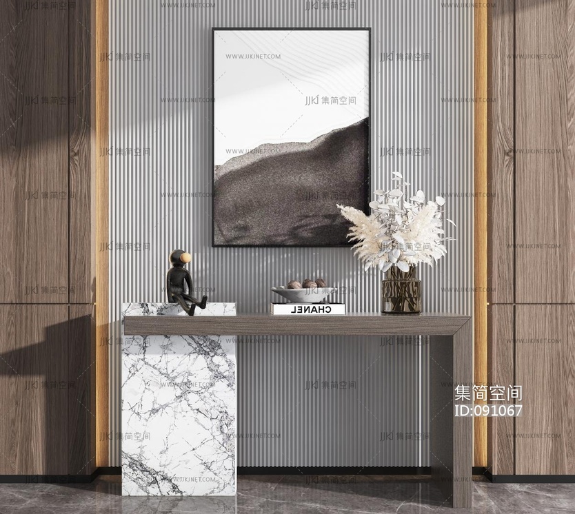 美式玄关柜摆台装饰画3D模型下载3d模型下载