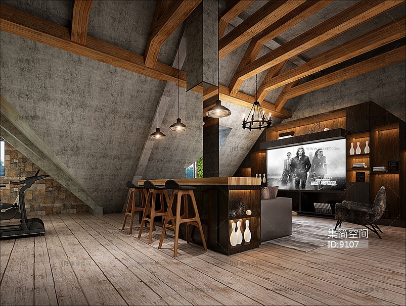 49-1104工业风格影音室 3d模型下载 [模型ID:9107]