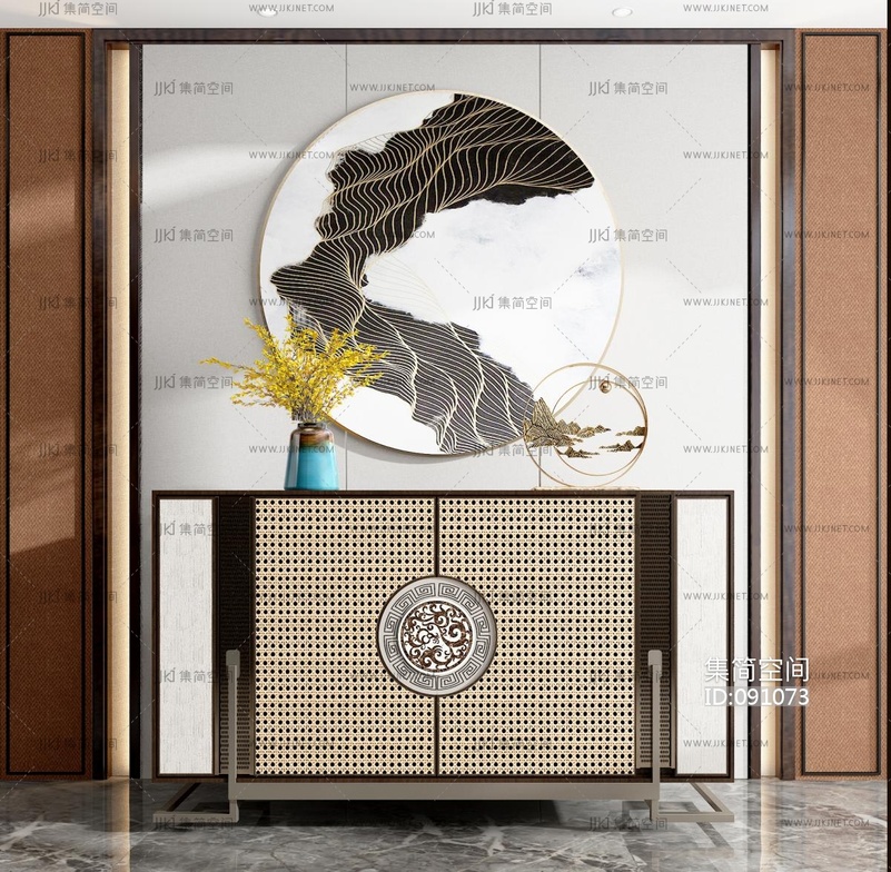 新中式实木端景台 3d模型下载 [模型ID:91073]