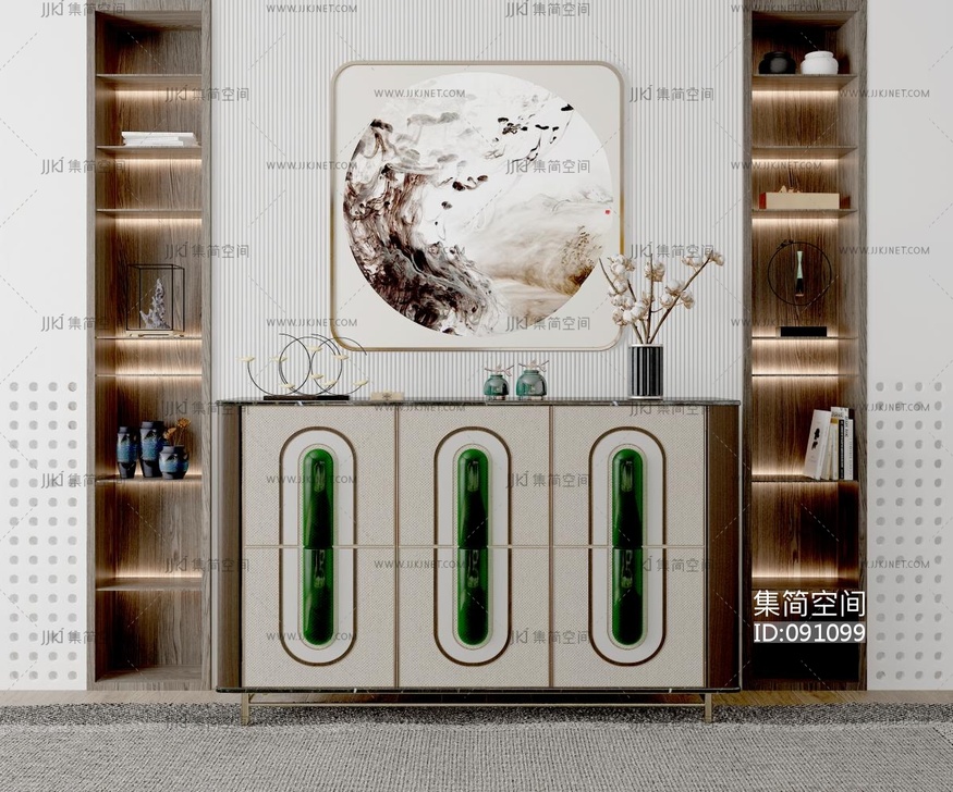 新中式轻奢玄关柜 3d模型下载 [模型ID:91099]