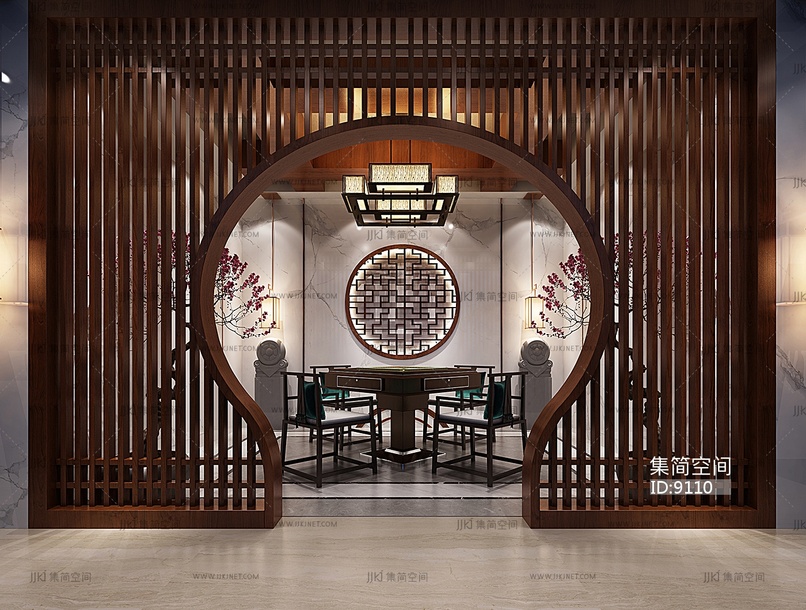 52-1104中式棋牌室 3d模型下载 [模型ID:9110]