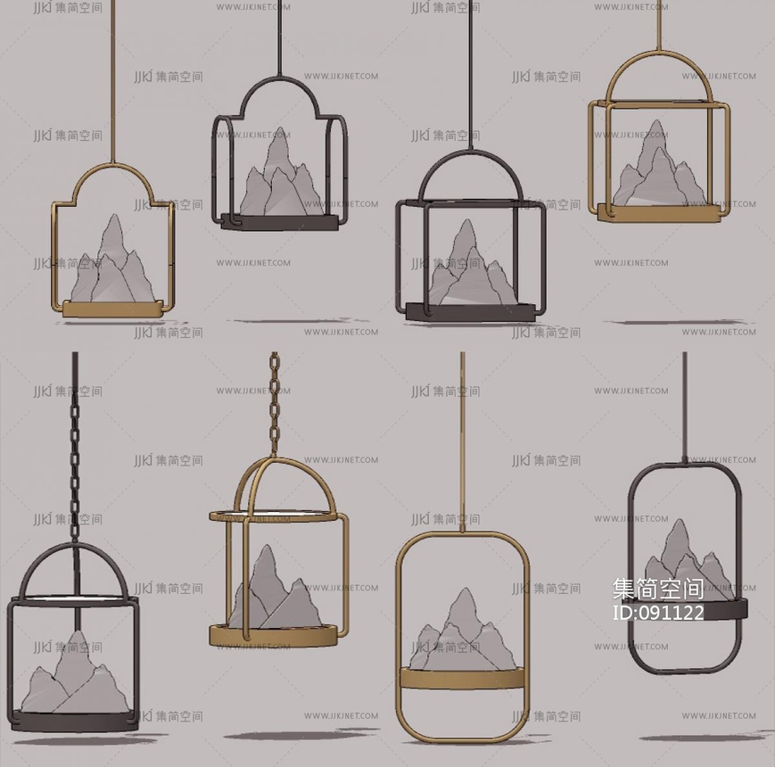 新中式小吊灯 su草图模型下载 [模型ID:91122]