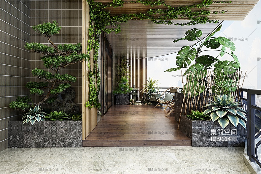 55-1104中式阳台景观柱子栅栏藤蔓植物 3d模型下载 [模型ID:9114]
