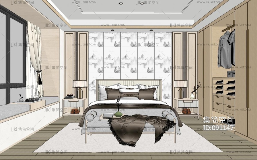新中式卧室 su草图模型下载 [模型ID:91147]
