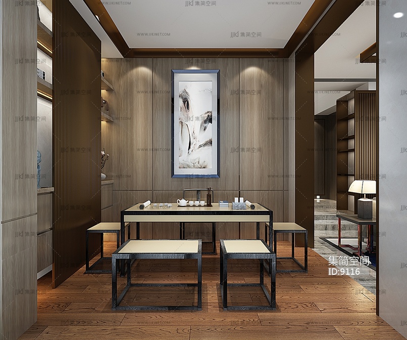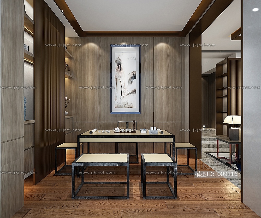 58-1104新中式茶室 3d模型下载 [模型ID:9116]