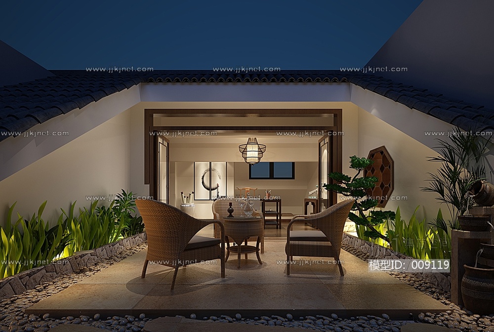 新中式庭院3d模型下载