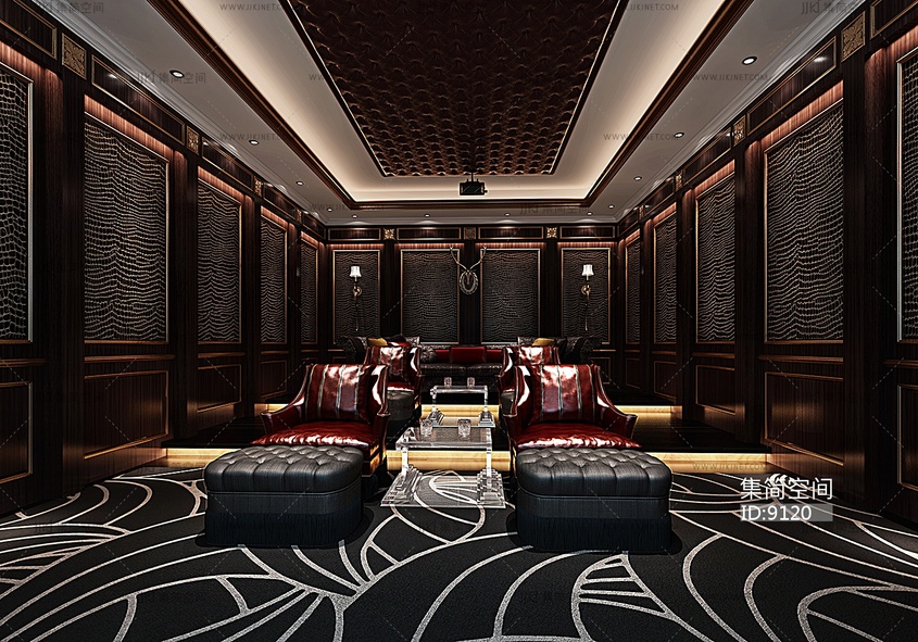 62-1104欧式影音室 3d模型下载 [模型ID:9120]