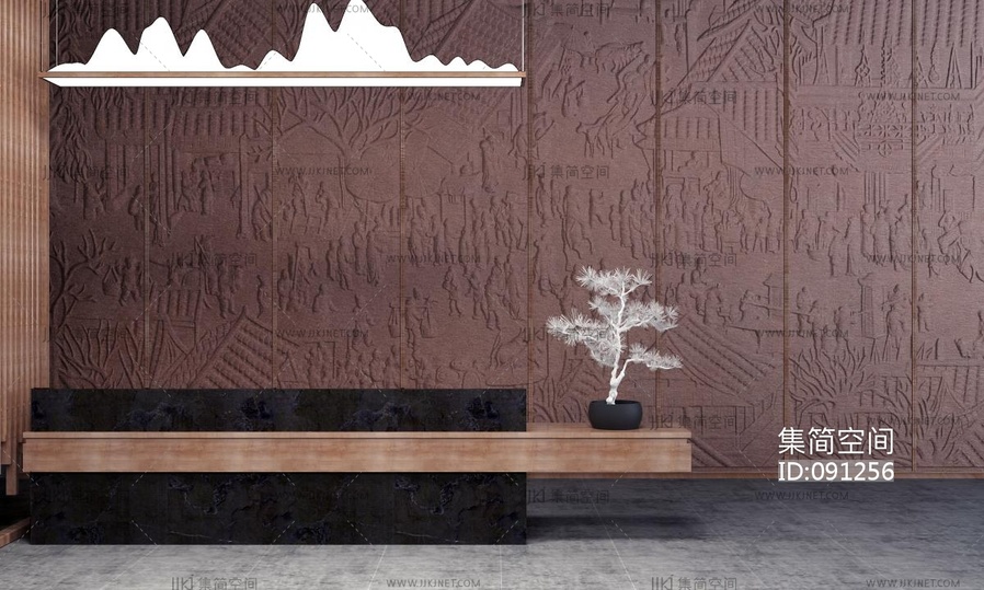 现代简约前台_石头服务台_岩石接待台_岩石前台_公司前台_服务台3D模型v3d模型下载