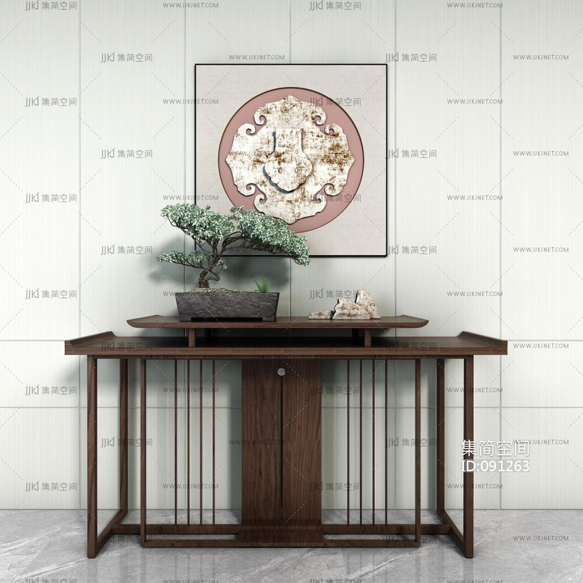 新中式玄关柜 3d模型下载 [模型ID:91263]