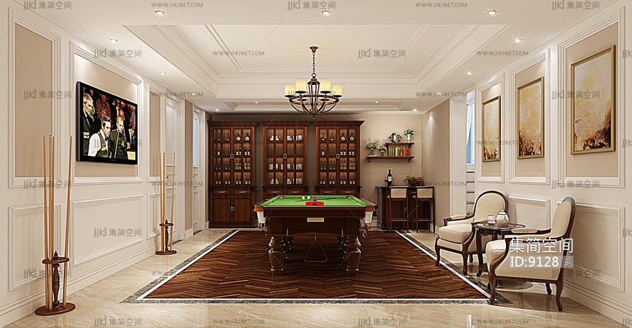 69-1104欧式台球室 3d模型下载 [模型ID:9128]