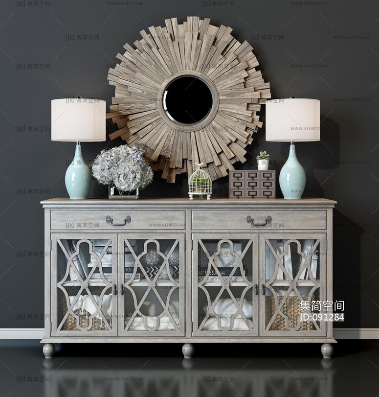 美式玄关柜摆台装饰画3D模型下载3d模型下载