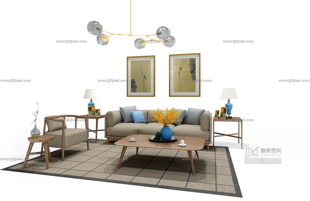 004现代中式沙发组合 3d模型下载 [模型ID:913]