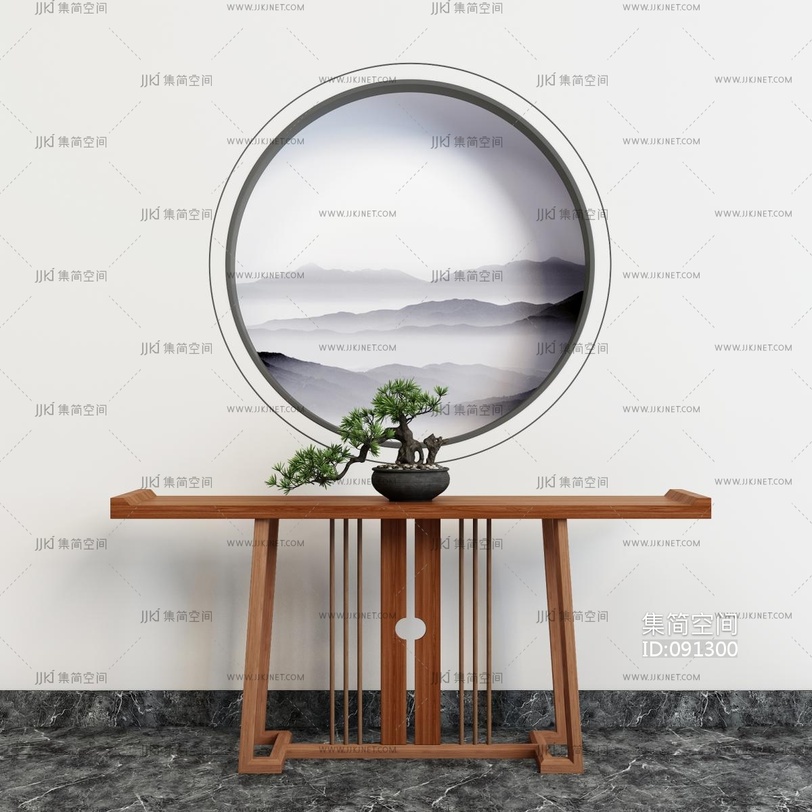 美式玄关柜摆台装饰画3D模型下载3d模型下载