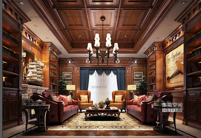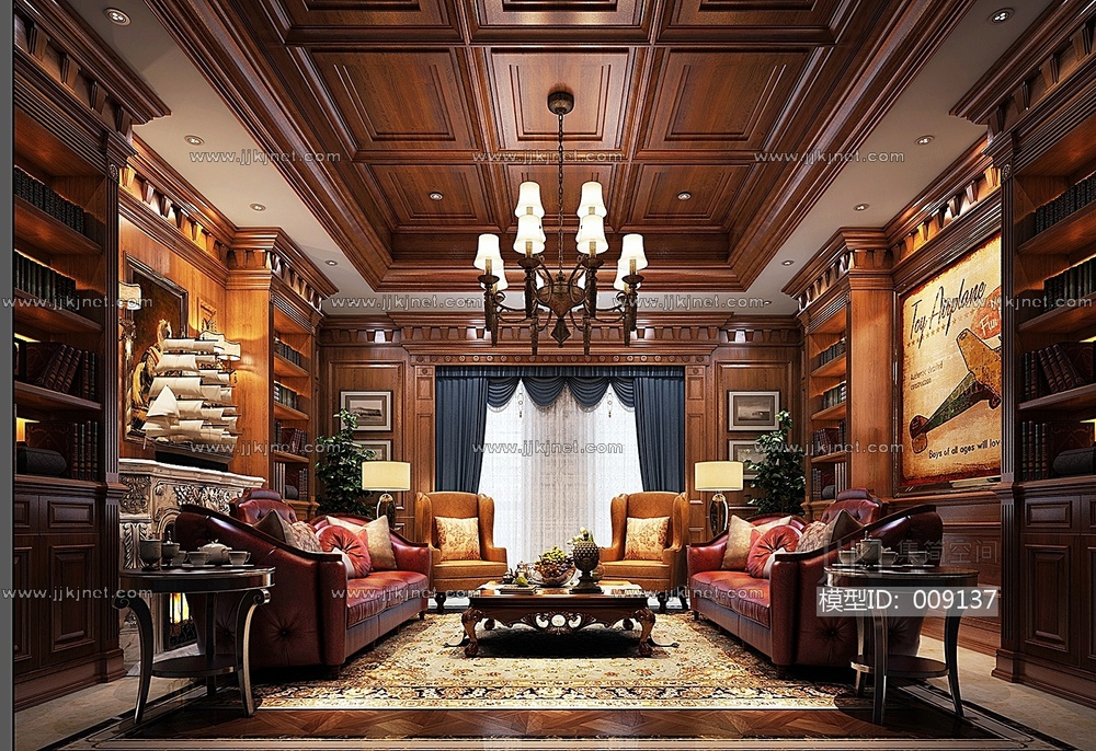 84-1104美式会客厅 3d模型下载 [模型ID:9137]