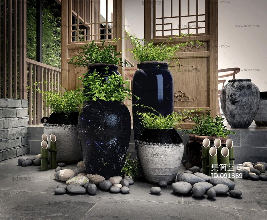 新中式绿植盆栽 3d模型下载 [模型ID:91389]