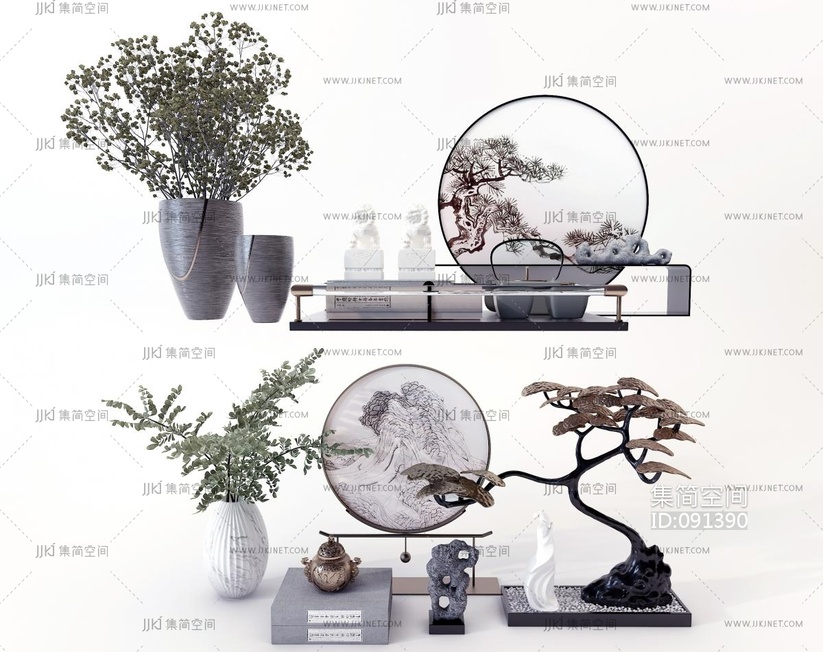 新中式盆栽花瓶,摆饰组合 3d模型下载 [模型ID:91390]
