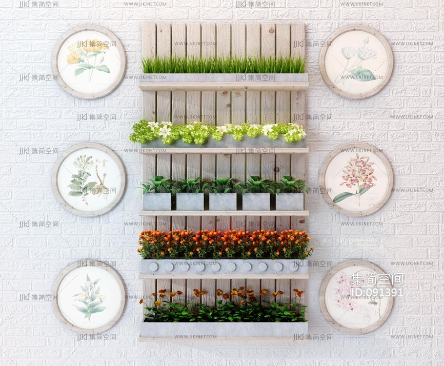 北欧壁挂花架,盆栽阳台植物 3d模型下载 [模型ID:91391]
