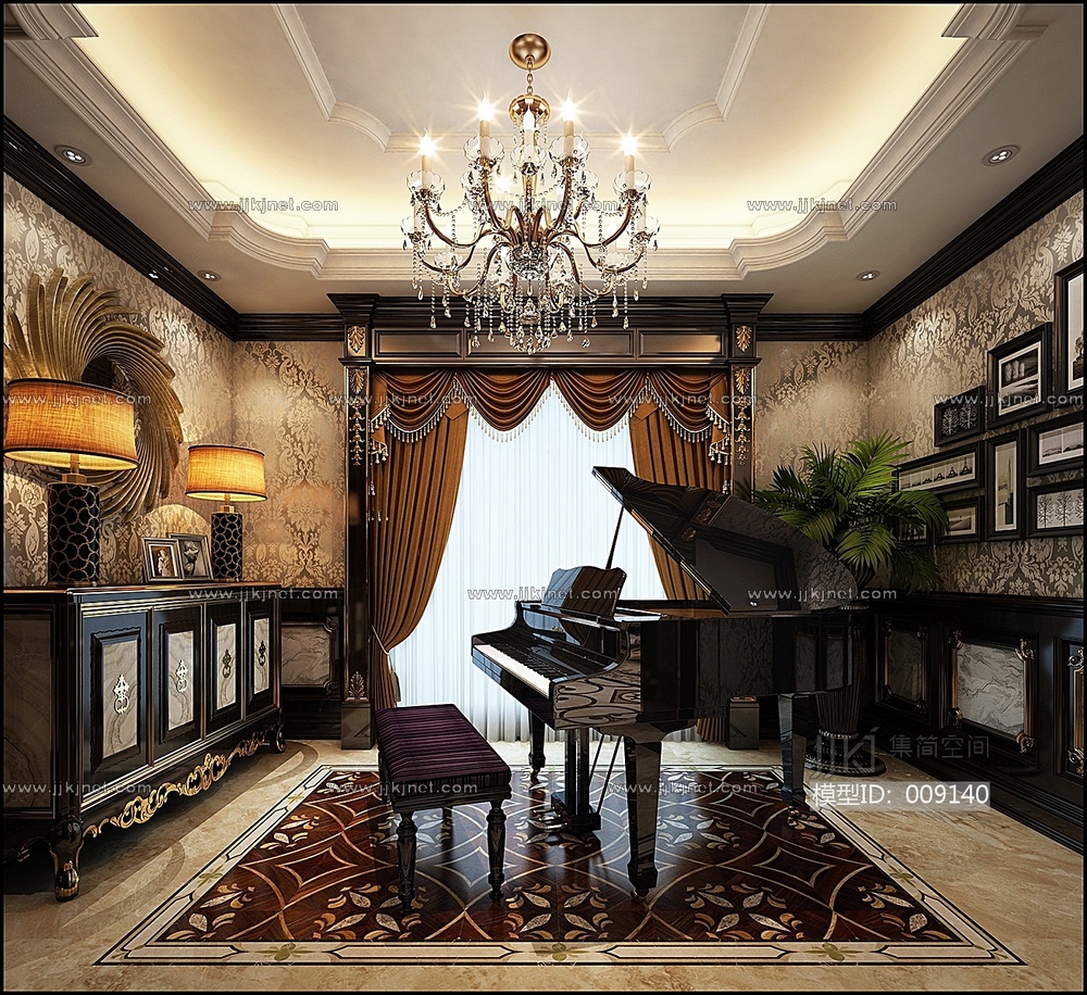86-1104欧式钢琴室 3d模型下载 [模型ID:9140]