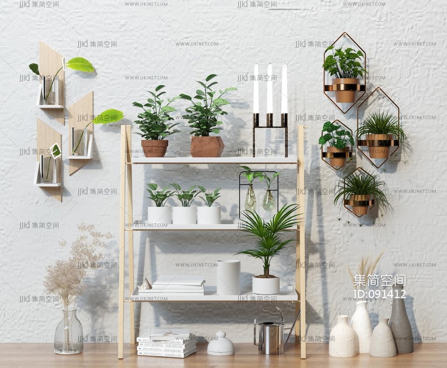 北欧阳台植物花架 3d模型下载 [模型ID:91412]