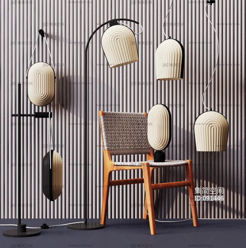 新中式落地灯,椅子组合 3d模型下载 [模型ID:91446]