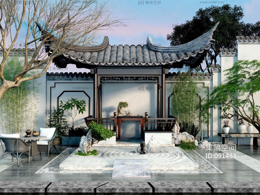 中式古建园林,庭院 3d模型下载 [模型ID:91463]