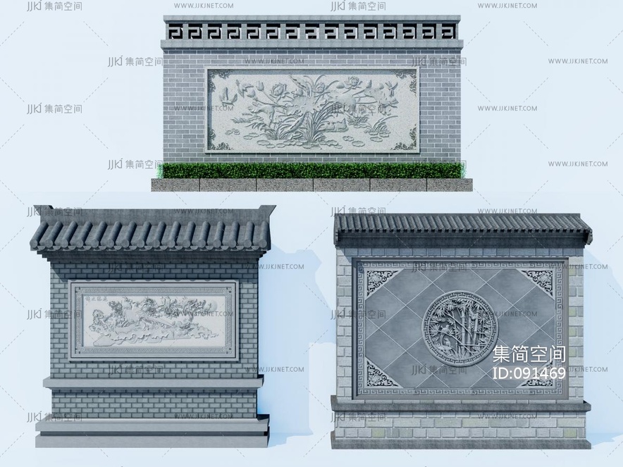 中式影壁照壁 3d模型下载 [模型ID:91469]