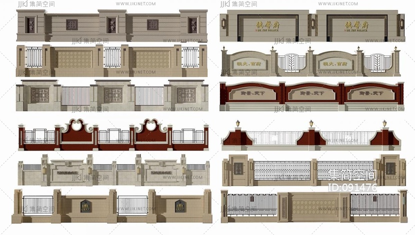 欧式小区围墙 3d模型下载 [模型ID:91476]