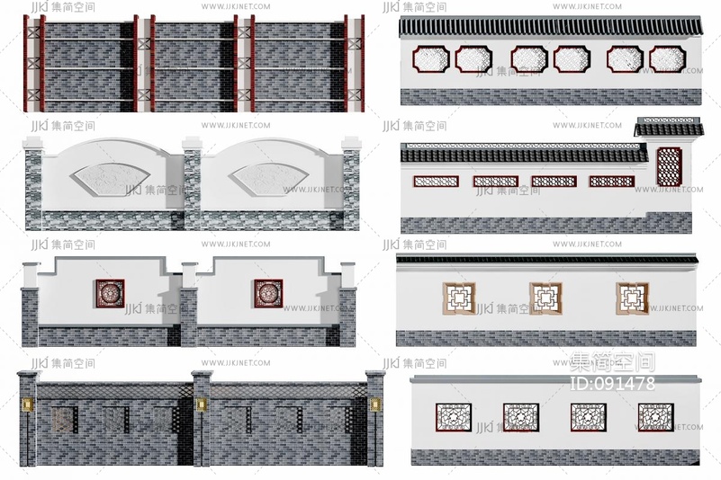 新中式古建围墙院墙 3d模型下载 [模型ID:91478]