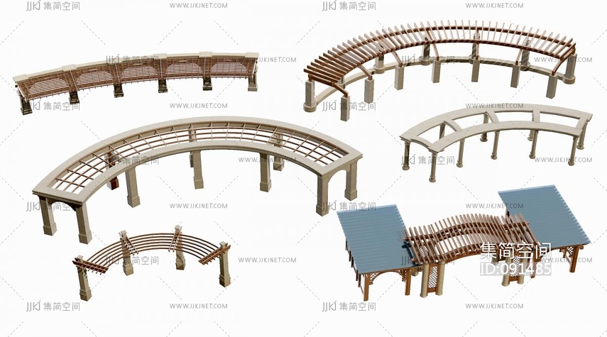 简欧式景观弧形长廊廊架 3d模型下载 [模型ID:91485]