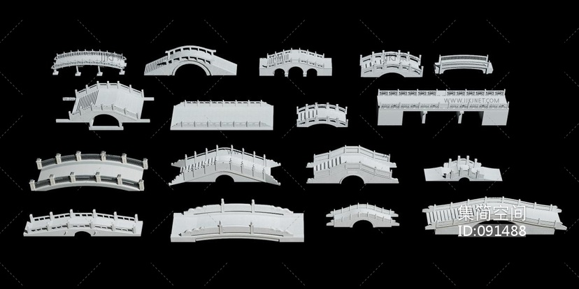 中式玉石栏杆,石拱桥平桥, 3d模型下载 [模型ID:91488]