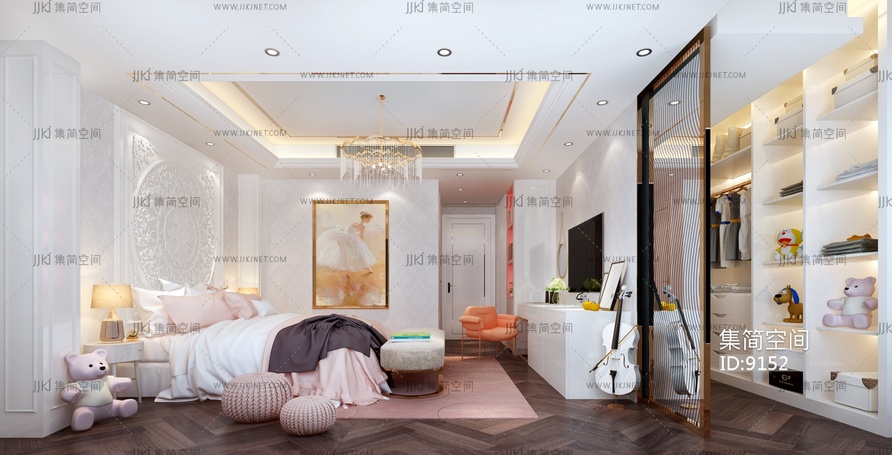 01-11.3简欧儿童房女孩房公主房 3d模型下载 [模型ID:9152]