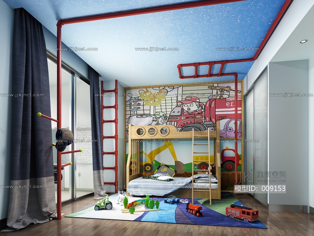 02-11.3现代儿童房 3d模型下载 [模型ID:9153]