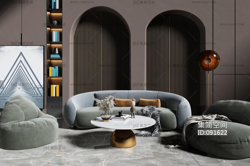 现代沙发,懒人沙发,茶几落地灯组合 3d模型下载 [模型ID:91622]