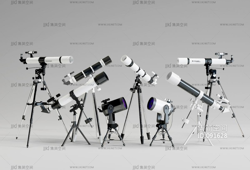 现代天文望远镜组合 3d模型下载 [模型ID:91628]