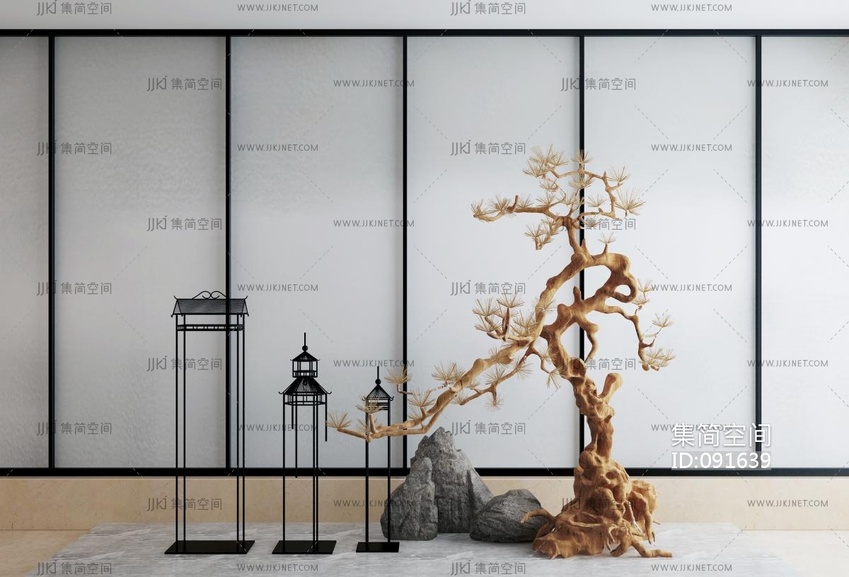 新中式景观小品石头,松树 3d模型下载 [模型ID:91639]