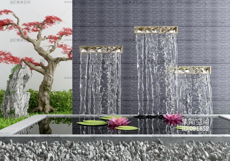 新中式庭院景观流水背景墙,水景 3d模型下载 [模型ID:91652]