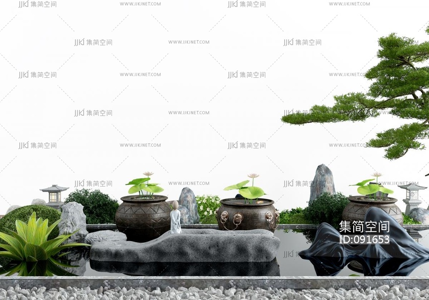 中式景观小品水景 3d模型下载 [模型ID:91653]