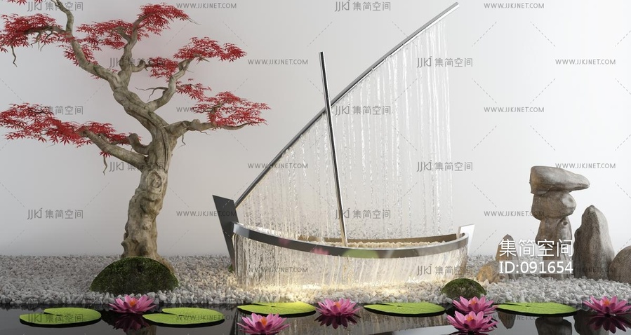 新中式景观小品,船,水景 3d模型下载 [模型ID:91654]