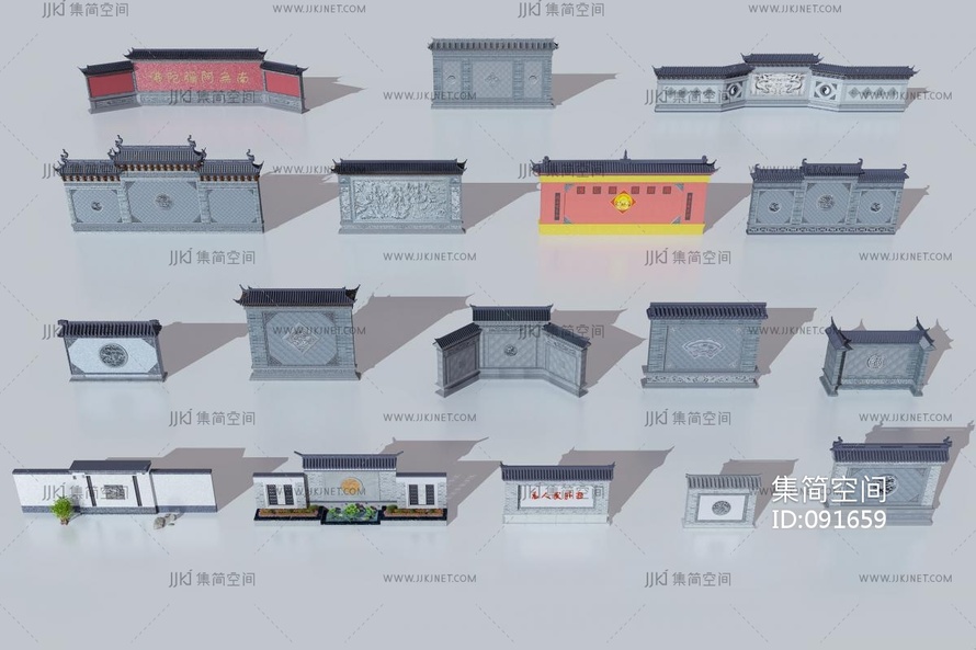 中式照壁景墙 3d模型下载 [模型ID:91659]