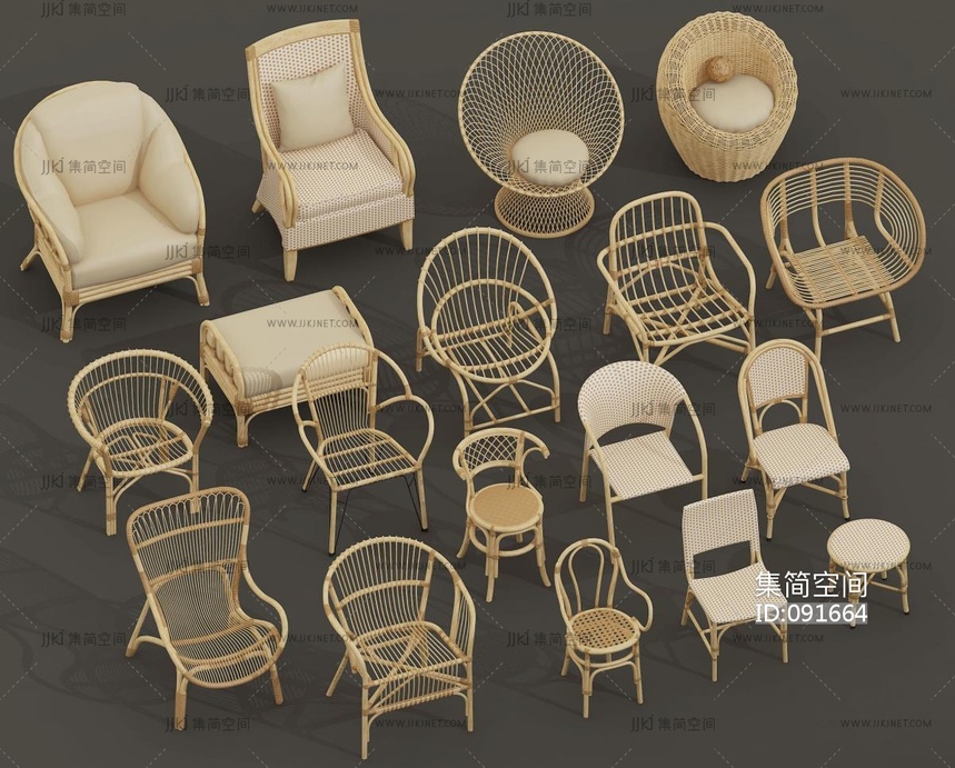 新中式茶桌椅_竹编桌椅组合3d模型下载