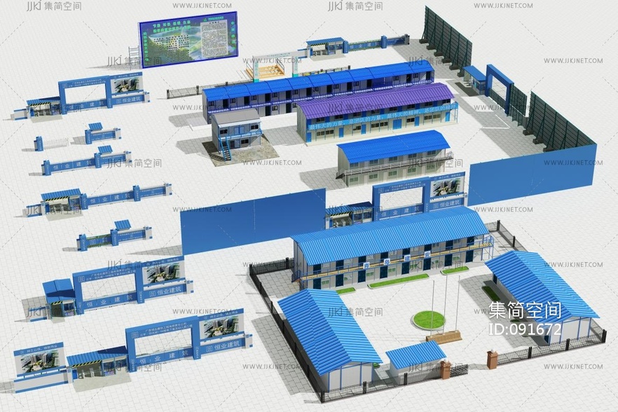现代工地活动板房围挡设备 3d模型下载 [模型ID:91672]