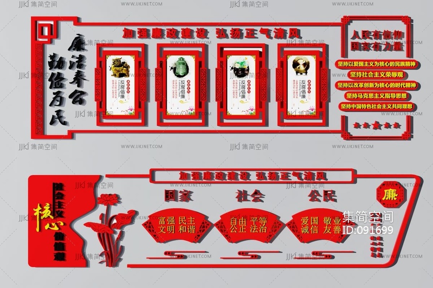 现代党建文化宣传栏,文化墙, 3d模型下载 [模型ID:91699]