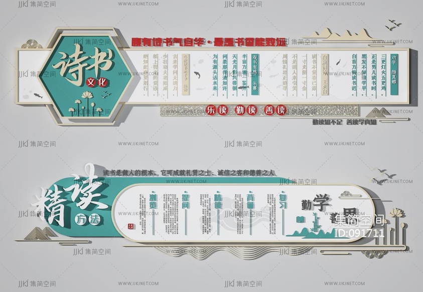 新中式校园文化墙,宣传栏 3d模型下载 [模型ID:91711]